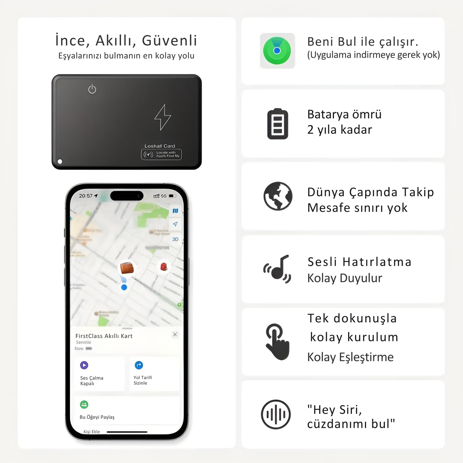 Cüzdanınıza sığan teknoloji. Apple Find My tarafından desteklenir. Yeni nesil devreler ve kablosuz şarj ile üretilmiştir.